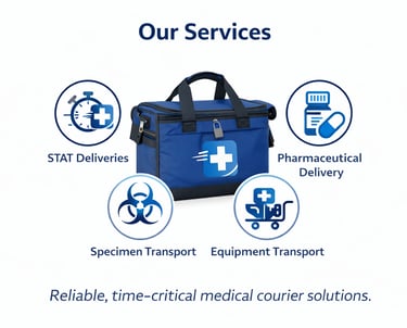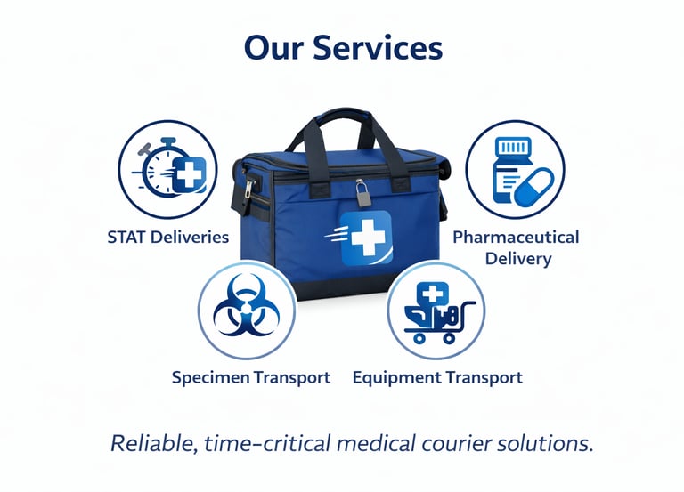 Code Blue Couriers provides reliable, time-critical medical courier solutions for hospitals, laboratories, pharmacies, clinics, and healthcare partners. Whether you need an on-demand STAT run or a scheduled daily route, we deliver with urgency, accuracy, and strict handling standards.